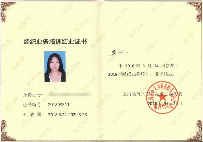 上海稀金所赵凯和姜玉取得结业证书