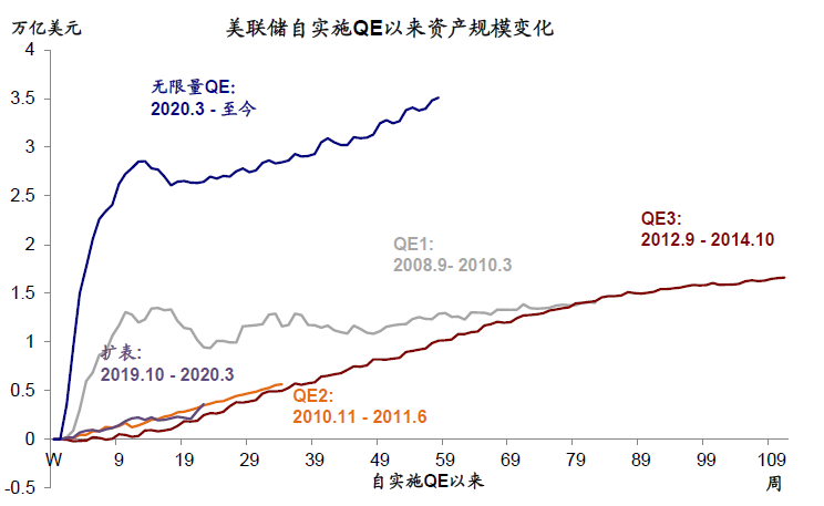不论是QE还是扩表都是美国货币当局永久性向市场注入流动性的最主要方式。