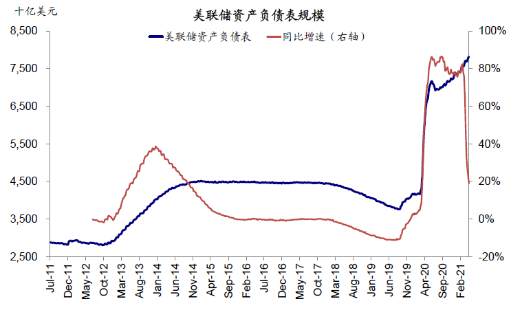 疫情以来,美联储资产规模从4.2万亿美元激增至7.8万亿美元,增幅超过2008年金融未来以来三轮QE之和。