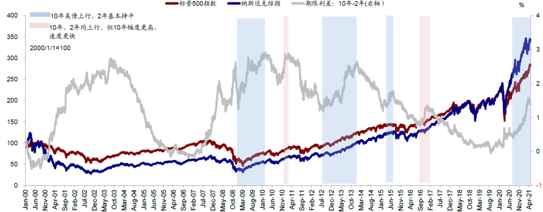 根据历史经验,这种以长端利率为主的收益率曲线陡峭化往往对应的宏观环境是经济复苏扩张、而流动性尚未收紧的阶段,因此很少出现系统性的熊市(《收益率曲线陡峭化的含义与影响》)。而等到短端利率开始逐步上行导致收益率曲线进入熊平阶段,市场面临的压力和波动会开始逐渐增多。