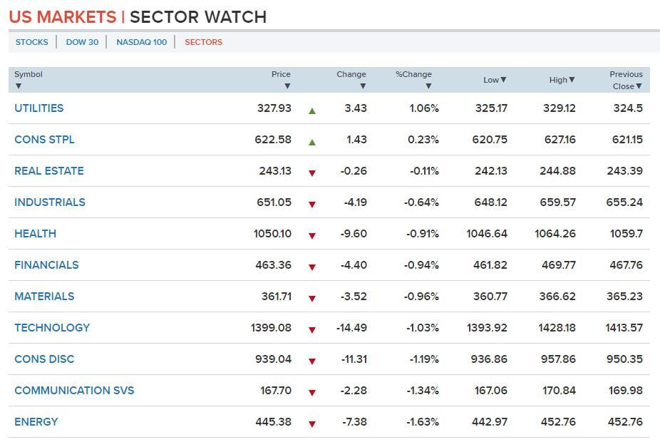 截至收盘,道指下跌142.22点,报26807.77点,跌幅为0.53%;标普500指数下跌25.18点,报2966.60点,跌幅为0.84%;纳指下跌118.83点,报7993.63点,跌幅为1.46%。